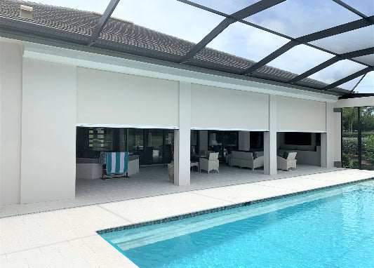Solar screens provide protection from the sun, wind, and heat, as well as provide that extra layer of privacy for your outdoor space.