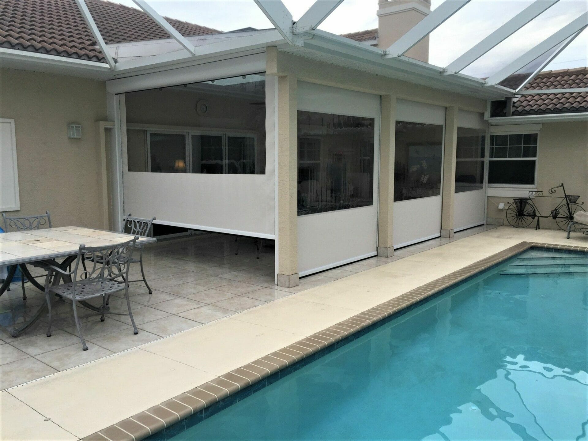 Vinyl screens are great when you want to use your outdoor space year round. They provide protection from the outside temperatures, wind, insects and the sun.